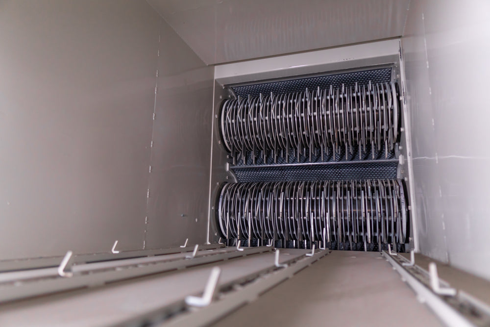 Sistema completo: Incluye cintas transportadoras de entrada y salida para facilitar el flujo del material.